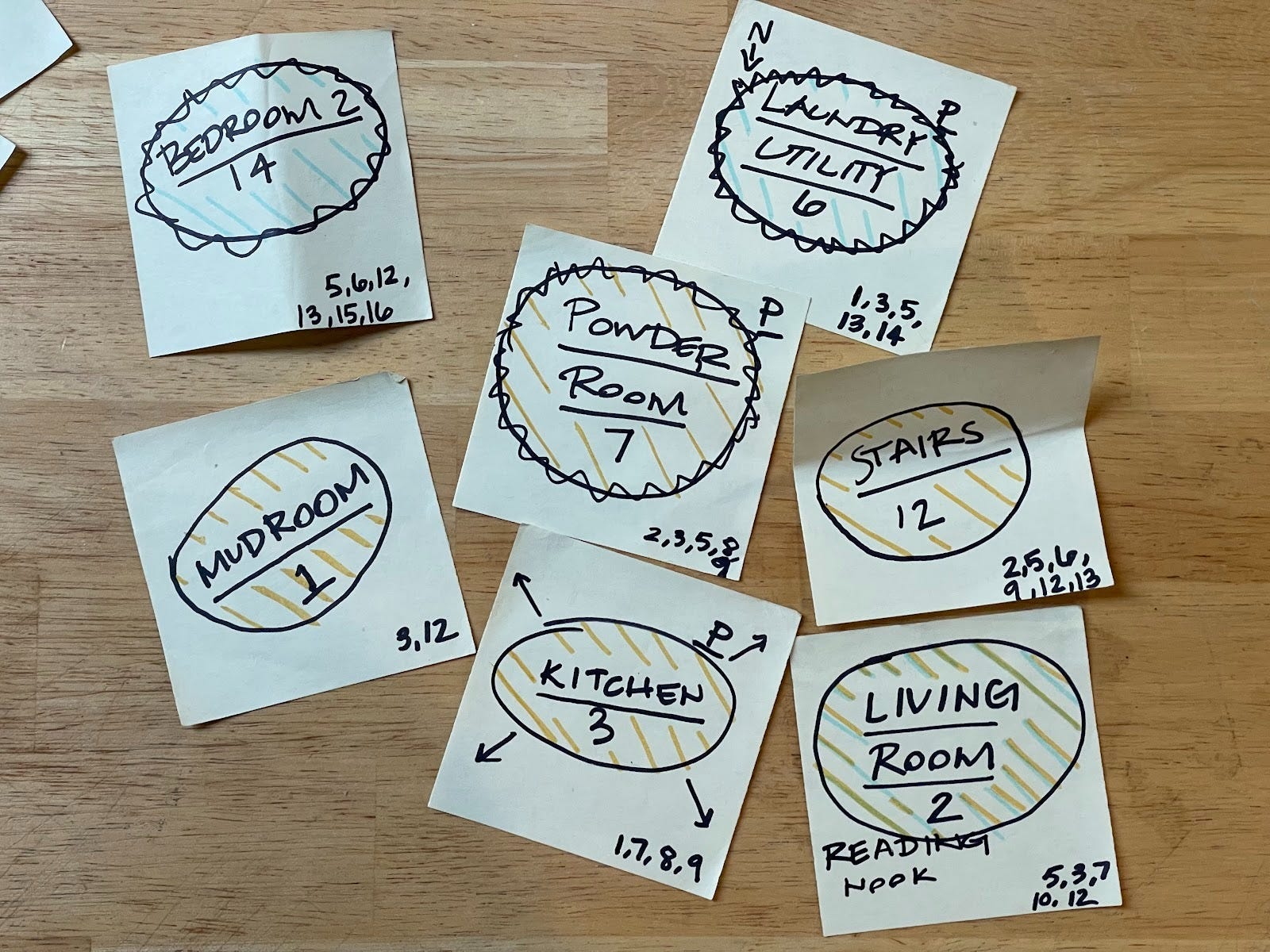 We tried to take what we were learning and apply it to the interior layout of the house. We consulted with friends who are architects, learned about public and private spaces, loud and quiet spaces, and eventually we put all the rooms we wanted on post it notes, with different color codes for those things, to try different configurations.